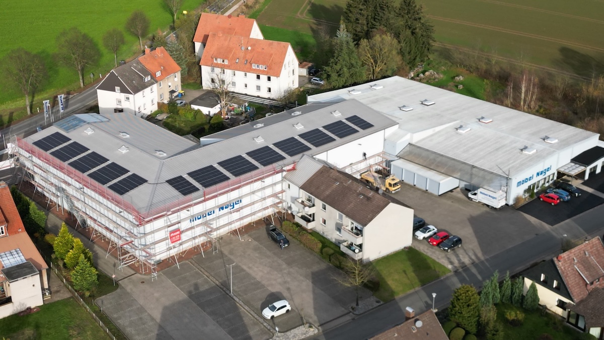 Möbel Nagel realisiert eine weitere Photovoltaik-Anlage auf dem Dach des Einrichtungshauses. Mit dieser werden pro Jahr ca. 68.000 Kilowattstunden Strom erzeugt.