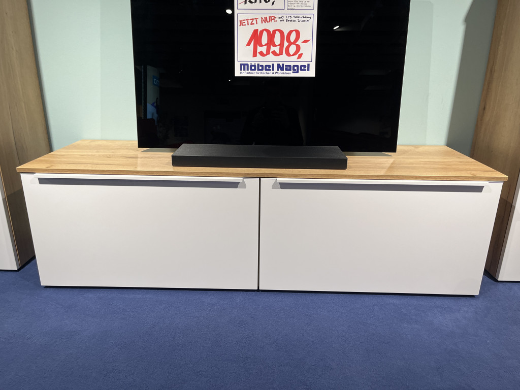 Korpus: Eiche Sierra NB 198Front: Lacklaminat Alpinweiß supermatt 332Griffleiste 690 AlpinweißGröße: B/H/T 343 / 205,7 / 48,5 cm