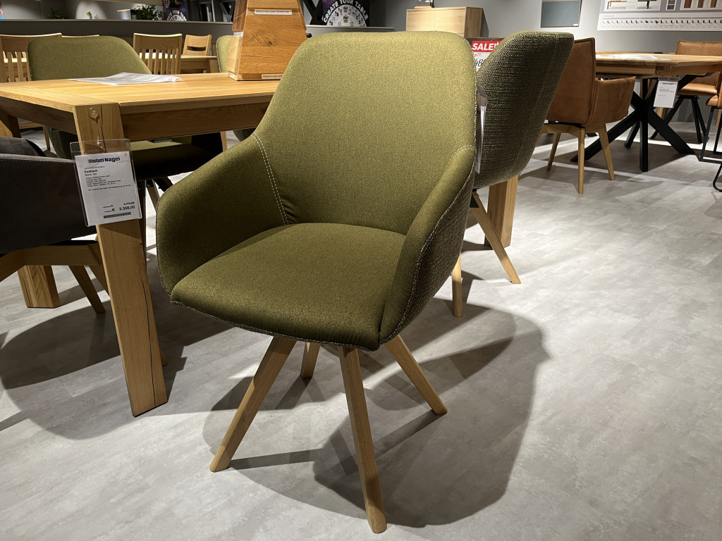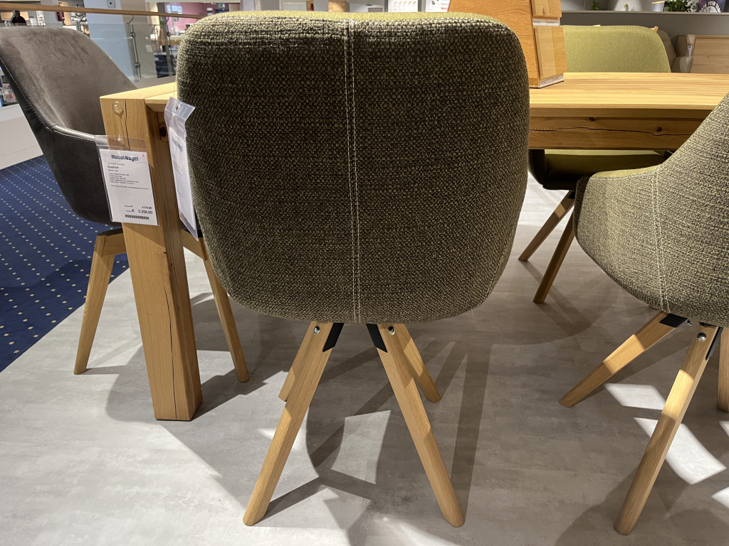 4x Bezug: 42 MC-Grün-95 Kat. A2x Bezug: 09 RE-Anthracite-67 Kat. FGestell: Holzstativ Eiche bianco geöltSitzhöhe: 50 cmGröße: B/H/T 59 / 92 / 63 cm inkl. Drehfunktion