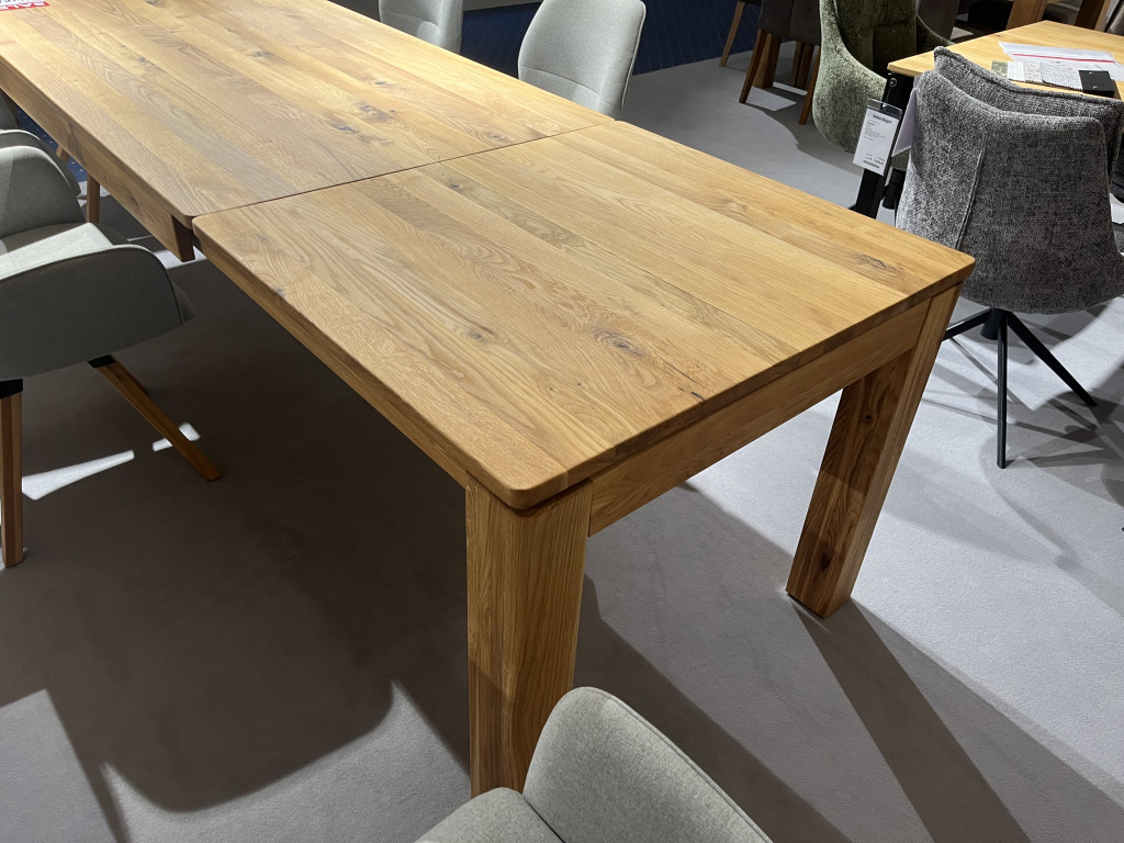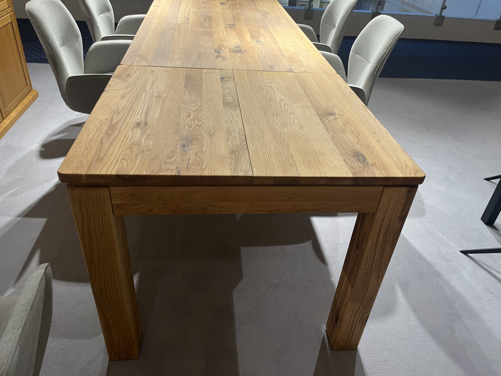 Wild-/Balkeneiche massiv geöltdurchgehende LamelleBeine: 10 / 10 cm Art.Nr: 1005616B/H/T: 180(260) / 77 / 90 cminkl. Butterflyauszug