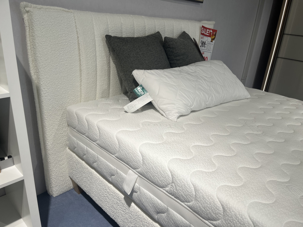 140 x 200Bezug: Triumph 4 weiß Füße: konisch Eiche 12 cm Kopfteil: Rio mit Überstand, Höhe: 110 cm Unterbau: 2 x UG Light 21 cmMatratze: Premium Mikrotaschenfederkern H2