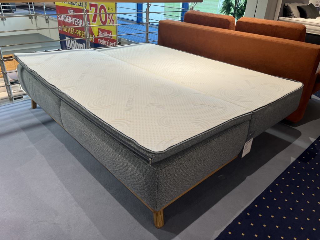 Bezug S1: 55-6588Querschläfer mit BettkastenFüße/Leiste: Holz Eiche natur B/H/T: 200 / 94 / 112 cmLiegefläche: 160 x 200 cminkl. Integrierter Wendematratze, Hubbeschlag,Holzleiste und Füße in Eiche Natur