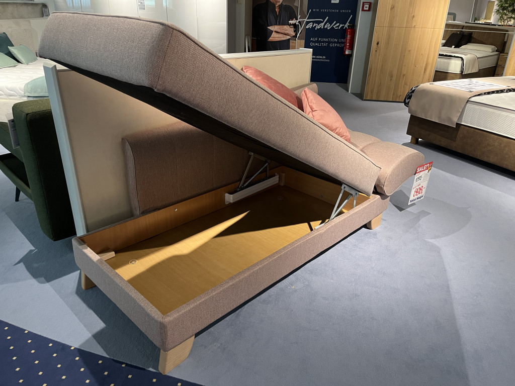 Bezug S1: 55-6489, S2: 55-6506Einzelliege Armlehne rechts klappbarFederkernHolzart: Buche naturB/H/T: 209-230 / 87 / 99 cmLiegefläche: 80 / 210cminkl. Bettkasten