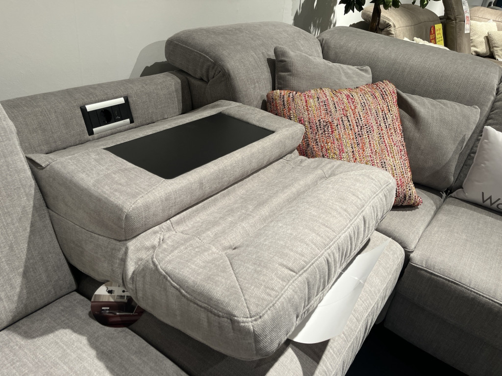 incl. Kopfteilverstellung, Ablage m. Steckdose u. USB, motorische Relaxfunktion im Longchair u. 1-Sitzer rechts
