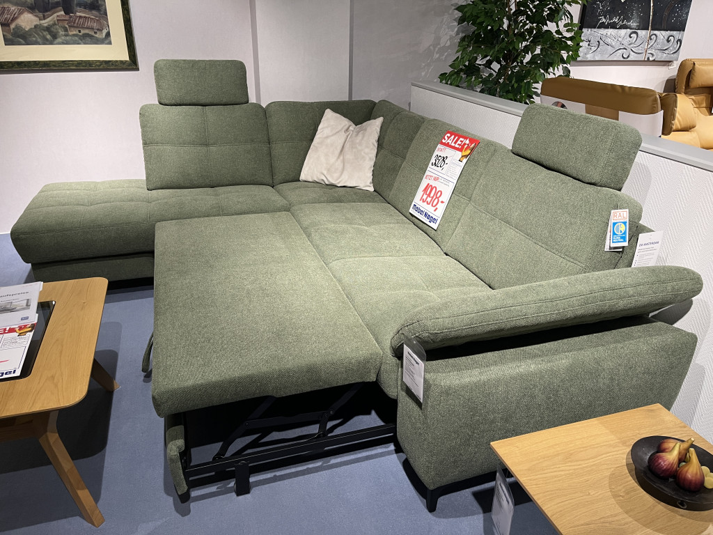 Bezug: Free oliv PG: 2Rücken echtFüße: Metallfuß 865 schwarz mattSitz: TonnentaschenfederkernSitzhöhe: 47 cmArmlehne: Variante B klappbarGröße: B/H/T 220 x 261 / 87 / 93 cminkl. Querschläfer, Stauraum und 2 Kopfstützen
